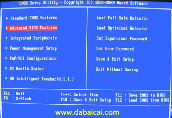 電腦啟動時按“del”或“F8”鍵進入BIOS設置具體設置請參閱 大白菜U盤裝系統設置U盤啟動教程
