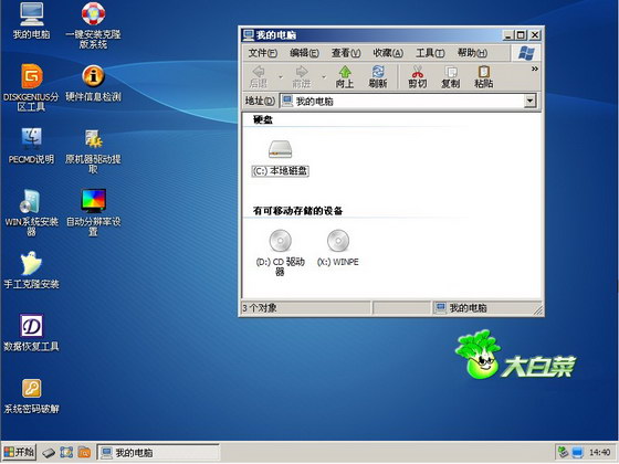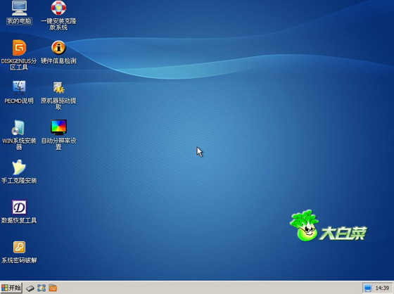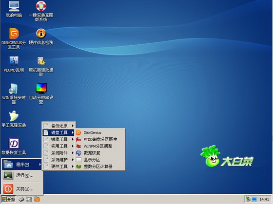 大白菜制作后寫入的啟動PE系統如下圖: