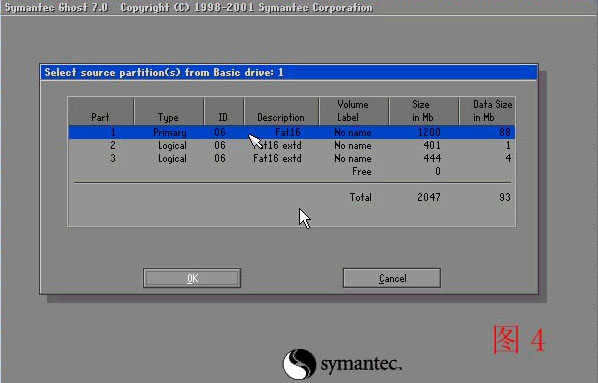1 選擇分區(可以用方向鍵上下選擇 用TAB選擇項目 )通常選擇第一個就是C盤 分區