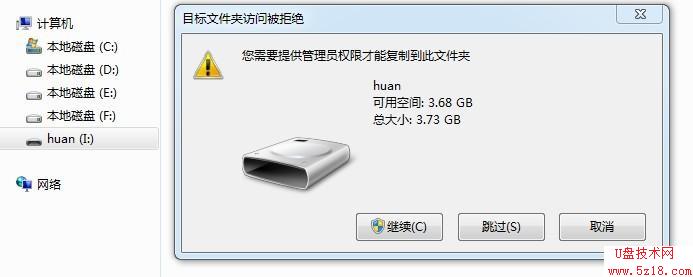 把文件粘到U盤里時(shí)提示要管理員的權(quán)限,怎么辦?