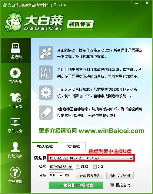 1、從大白菜官方網站http://www.dabaicai.com/下載大白菜U盤啟動制作工具。