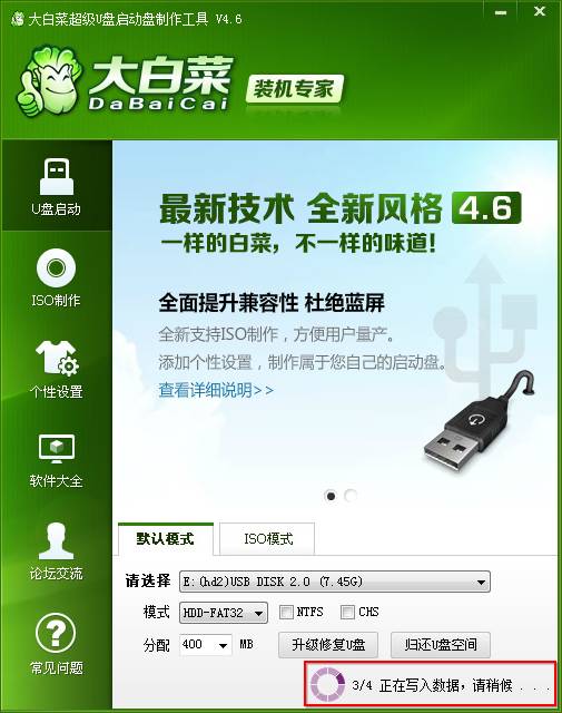 (注意:使用之前版本制作過的U盤如果制作失敗請先執行初始化U盤)