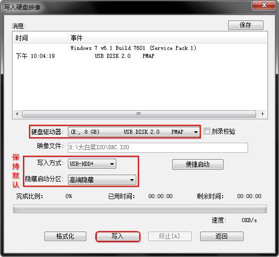 按鈕,按照圖中推薦選項進行選擇,最后點擊寫入按鈕等待寫入完成。(如需刻錄光盤,點擊