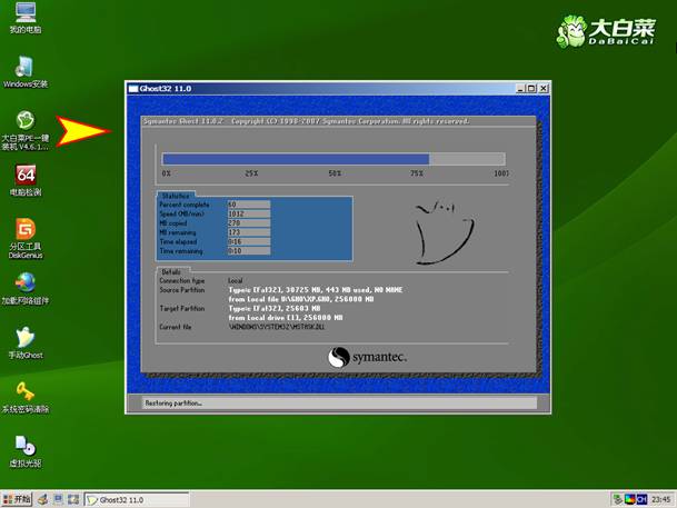 1、進入PE桌面后會搜索U盤是否存在名為GHO的文件夾,如果存在繼續檢測此GHO文件夾下GHO和ISO鏡像文件,然后程序彈出主界面提示進行選擇安裝,安裝完畢會自動提示重啟。注:本功能所指ISO并非安裝版本的系統鏡像。