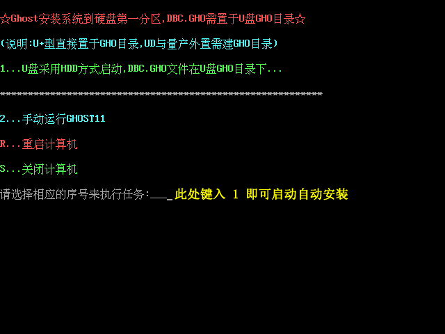 補充:自動安裝版本還包括DOS版,一鍵安裝GHO到硬盤第一分區,此DOS工具箱默認會自動安裝GHO文件夾下的DBC.GHO到硬盤第一活動主分區(C盤),除此之外新增多個版本的GHOST工具以供選擇。