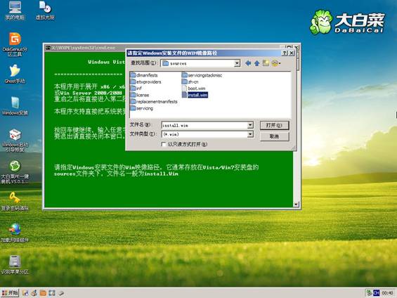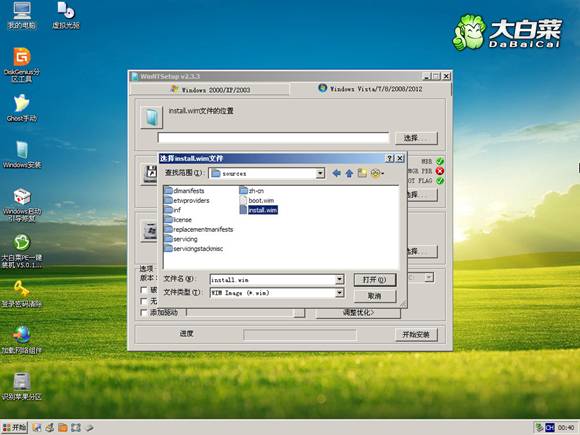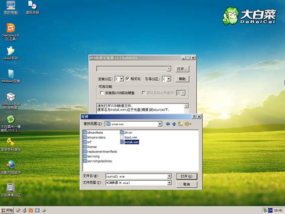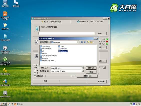 方法2、從Win7安裝盤sources目錄下提取install.wim放入U盤或硬盤,然后啟動U盤進PE,利用NT6安裝工具找到提取自ISO里的install.wim進行安裝。