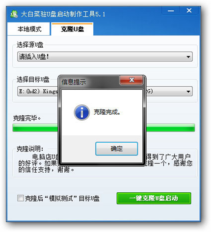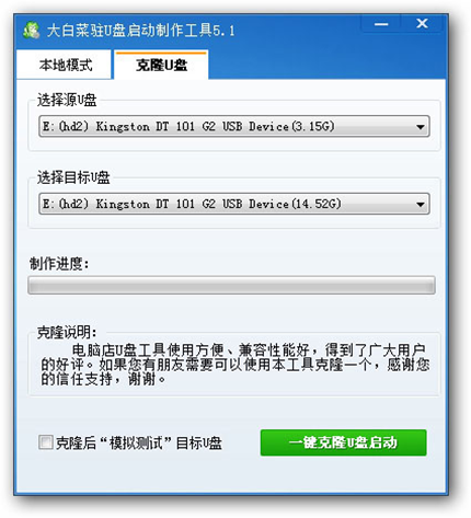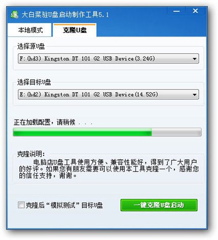 8、克隆U盤功能,無需大白菜核心程序包,讓U盤啟動制作更加簡單。