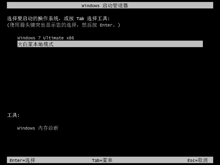 3、電腦啟動時選擇大白菜本地模式即可啟動大白菜U盤啟動了。