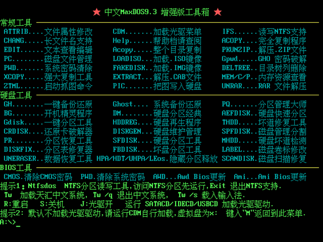 3、MaxDOS增強版工具箱: 最全的DOS工具集合增強版,經典的工具,N多的功能!與DOS時代菜鳥工具箱二合一,使用更加方便功能更為強大。
