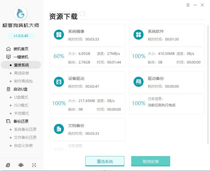 6、工具自動開始下載我們所選的系統、軟件、包括備份文件等等。