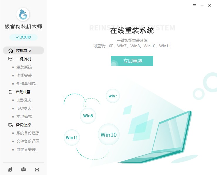 1、推薦在極客狗官網下載免費的電腦重裝系統軟件。