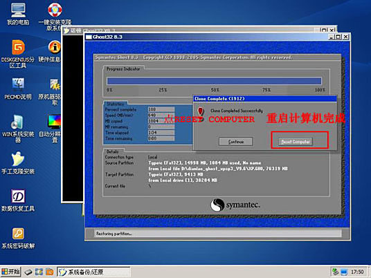 上面的步驟,根據(jù)機(jī)器配置不同,時(shí)間不同,按目前正常配置的機(jī)器計(jì)算,從進(jìn)入大白菜PE系統(tǒng),第一步恢復(fù)鏡像3分鐘,第二步進(jìn)行自動(dòng)恢復(fù)系統(tǒng)7分鐘,配置好的機(jī)器會(huì)更快!