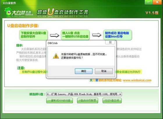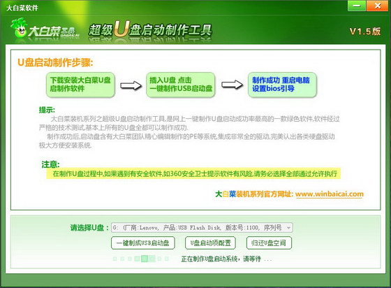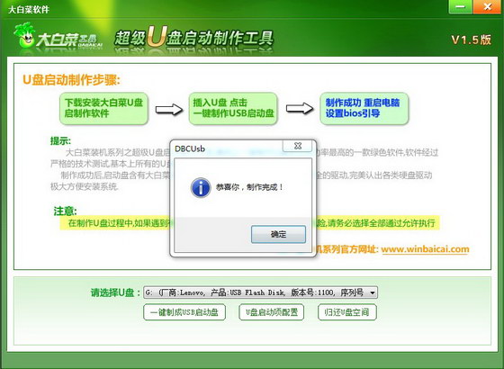 首先請(qǐng)下載大白菜超級(jí)U盤啟動(dòng)一鍵制作工具,下載地址見上面的說明。