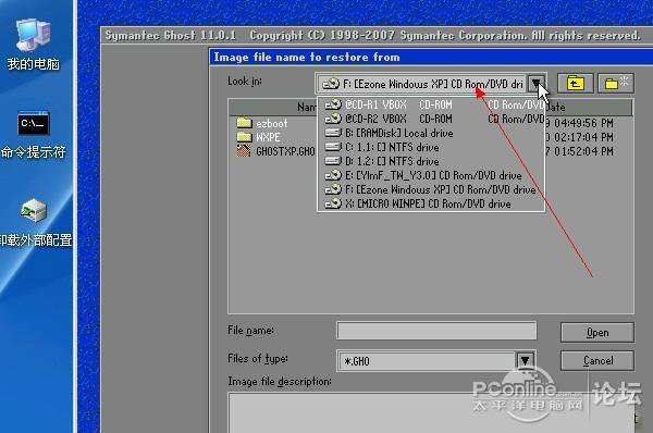 選擇GHO文件存放的分區或者光驅或者移動設備。然后選擇GHO文件。