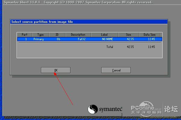 這里的意思是:從鏡像文件選擇源分區。點擊[OK]進入下一步