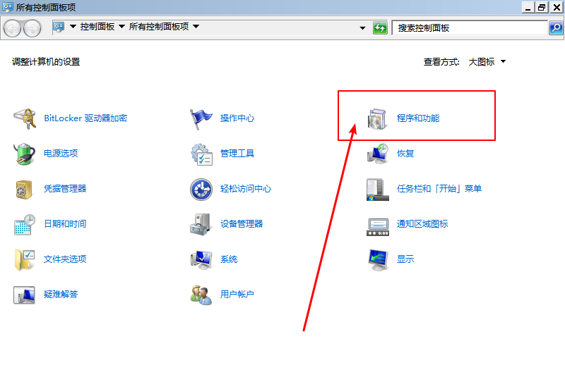 2、 進(jìn)入控制面板之后,點(diǎn)擊“程序和功能”