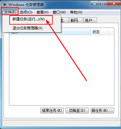 2、隨后,你會(huì)進(jìn)入任務(wù)管理器窗口,點(diǎn)擊 “文件”按鈕,點(diǎn)擊“新建任務(wù)”