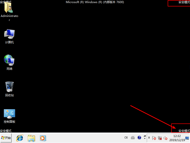 Ps:為了區(qū)分正常桌面和安全模式桌面,電腦桌面的四個(gè)角落都會(huì)有安全模式的字樣