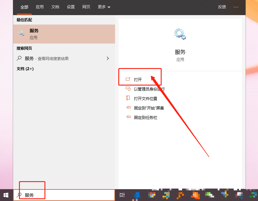 1、 在電腦桌面搜索框中,輸入并打開“服務”