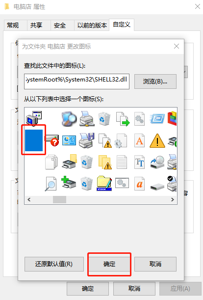 第三步:選擇如圖所示的“空白透明圖標”,點擊“確定”即可
