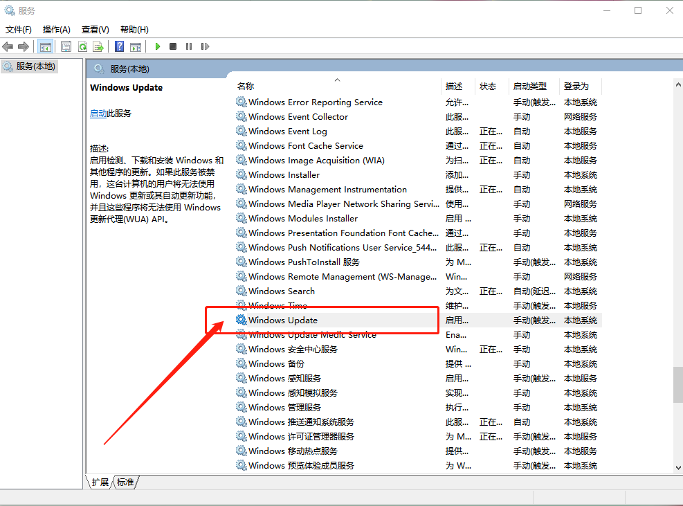 2、打開了服務(wù)界面后,以Windows Update服務(wù)為例,雙擊打開