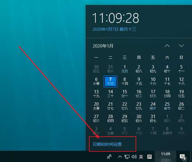 3、點擊右下角的時間,再點擊“日期和時間設置”,如下圖所示: