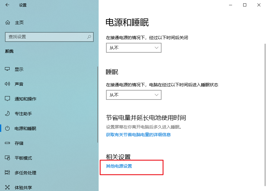 3、然后,繼續點擊右側的“其他電源設置”;