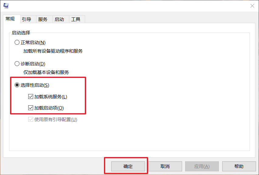 6、 隨后,在常規選項頁面,勾選“選擇性啟動”項,同時勾選“加載系統服務”和“加載啟動項”