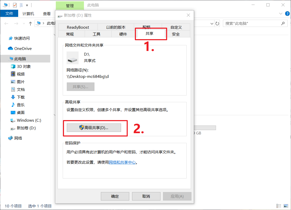 2、打開屬性后,切換到“共享”選項卡下,點擊“高級共享設(shè)置”