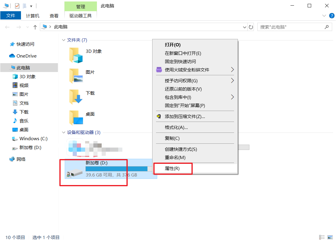 1、右鍵需要取消共享的磁盤,選擇“屬性