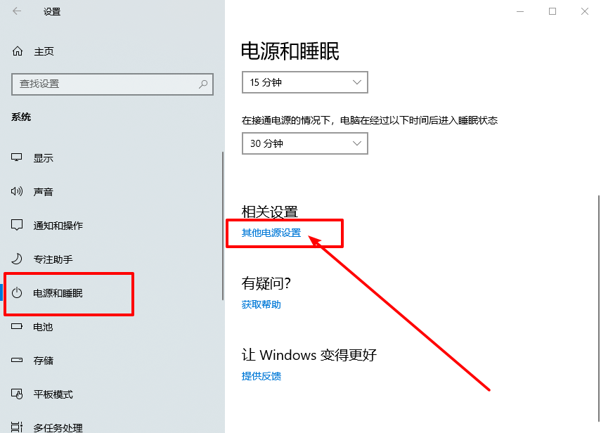 2、隨后,依次點擊“電源和睡眠”-“相關設置”-“其他電源設置”