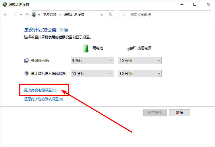 4、然后,再點擊底部的“更改高級電源設置”