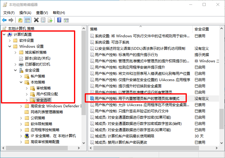 4、然后,在右側找到并雙擊【用戶賬戶控制:用于內置管理員賬戶的管理員批準模式】,將其設置為【禁用】即可