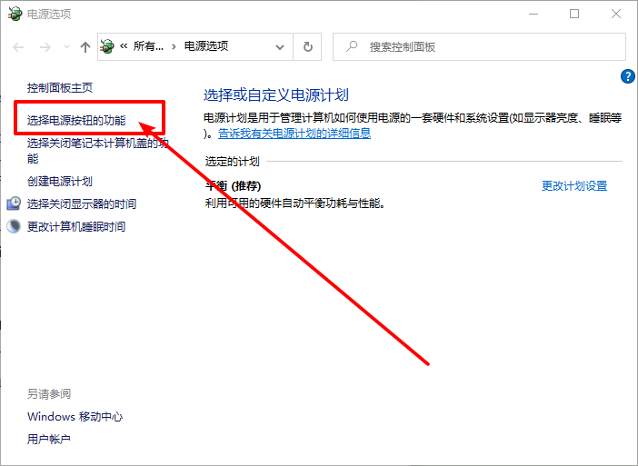 3、點擊頁面的“選擇電源按鈕的功能”