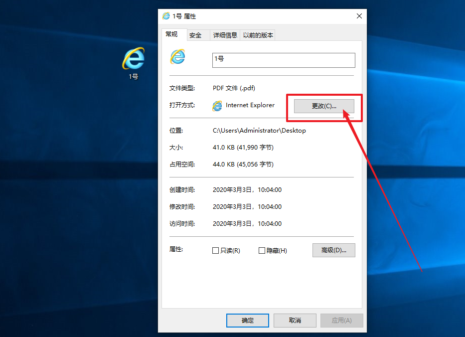 2、然后,在“常規(guī)”選項(xiàng)卡中,點(diǎn)擊打開方式后面的“更改”