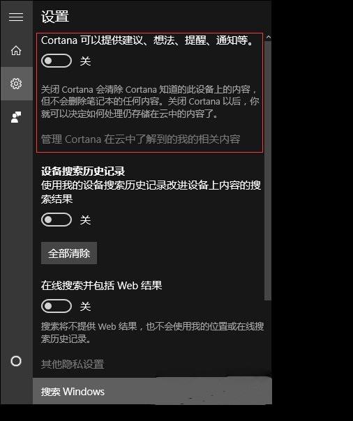 ??????? 以上步驟便是東芝筆記本k30關(guān)閉小娜但是又不影響本地搜索的全部過(guò)程,希望可以幫助到有需要的用戶!