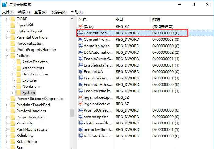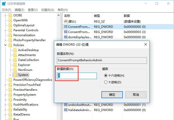 3、然后,在右側找到并雙擊【ConsentPromptBehaviorAdmin】值,將數值數據修改成【3】