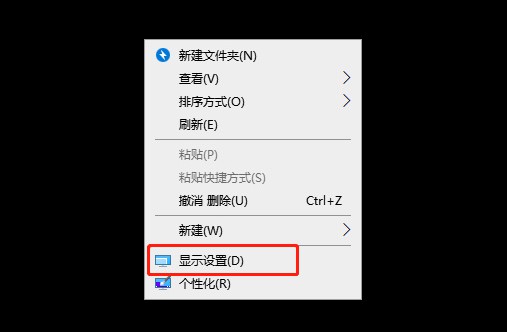 1、在桌面空白處鼠標(biāo)右鍵,選擇【顯示設(shè)置】;