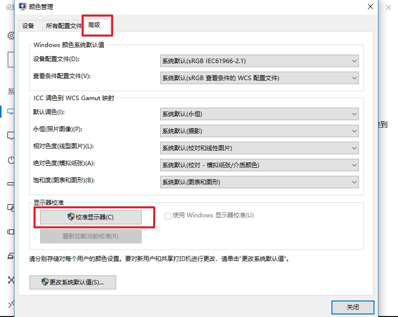 4、在彈出的界面中,點(diǎn)擊【校準(zhǔn)顯示器】,即可改善顯示器的顏色