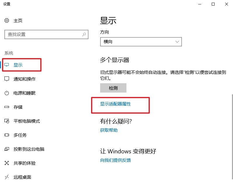 2、然后,在顯示界面右側(cè)點(diǎn)擊【顯示適配器屬性】;