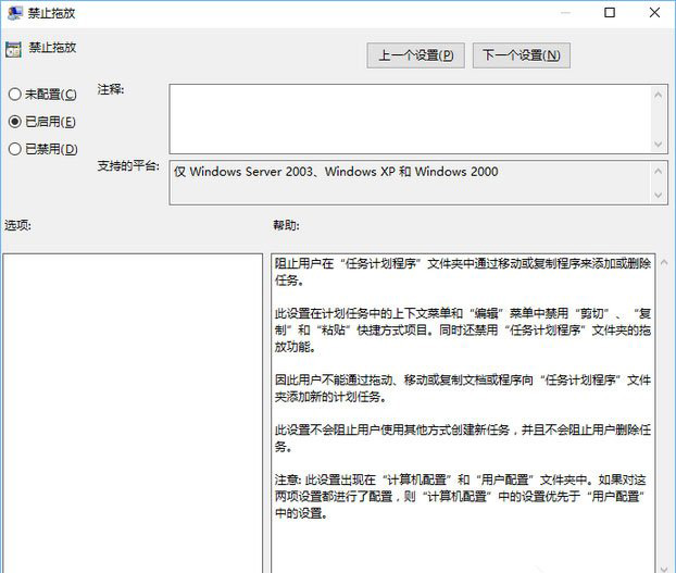 2、然后,依次展開“用戶配置”項(xiàng)目下方的“管理模板”在展開 “Windows組件”中,單擊“任務(wù)計(jì)劃程序”,然后在右邊窗口中找到“禁用拖放”