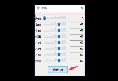 4、將【左前】音量設置滑塊拖到0,然后點擊【確定】即可,應該就能聽到原唱和伴奏了;