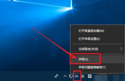 1、右擊音量圖標,在彈出的菜單中選擇【聲音】;
