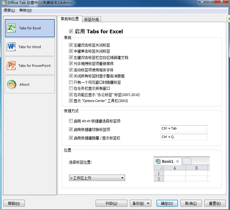 獨立OfficeTab設置中心,更加方便的設置OfficeTab的各組件功能