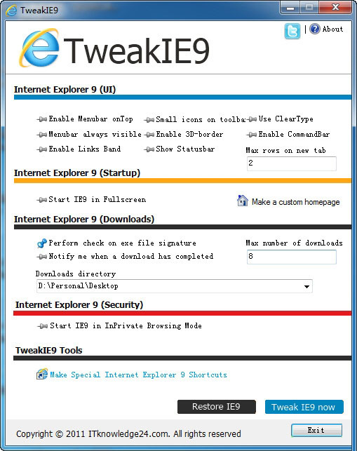 TweakIE9(IE9定制工具)V1.0綠色版|