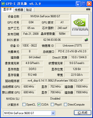 GPU-Z(顯卡檢測)V0.3.9 綠色漢化版|