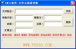 批量替換文件名工具,功能比較簡單,主要包括為文件添加前綴和后綴。