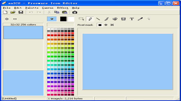 aaICO Icon Editor 能夠很方便的設計多重尺寸疊合的ico圖標,你可以設計多個不同尺寸的ico圖標并導出為一個