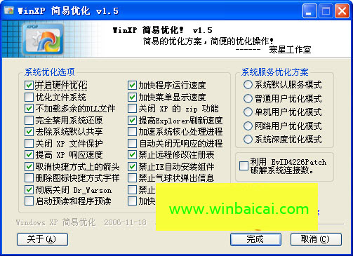 WinXP 簡易優化V1.5 build 1121綠色版|