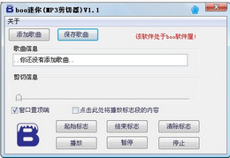 boo迷你(MP3剪切器)V1.1 是由boo軟件屋打造的精美的、免費(fèi)的、易用的、傻瓜的MP3剪切器軟件。 可以將歌曲